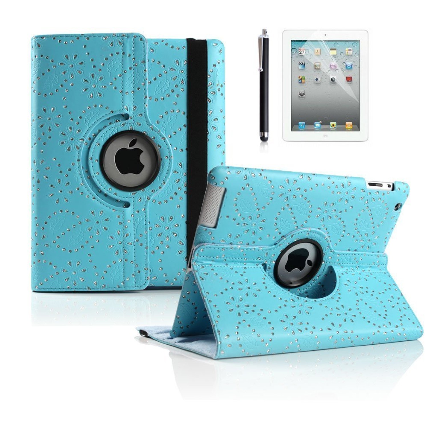 Tags: Apple iPad Pro 12.9" 360 Rotating Glitter, Diamond, Sparkling, Bling Pu Leather Case Cover with Adjustable Viewing Stand Free Stylus-Blue