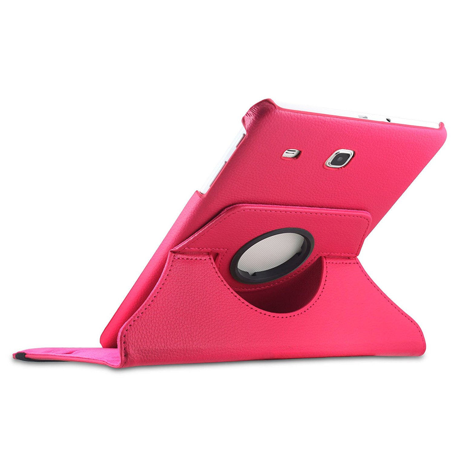 Samsung Galaxy Tab E 9.6 Case Cover - Premium Vegan Leather 360 Degree Rotating Swivel Stand for Samsung Tab E SM-T560 / T561 / T565 9.6-Inch Tablet(Pink)