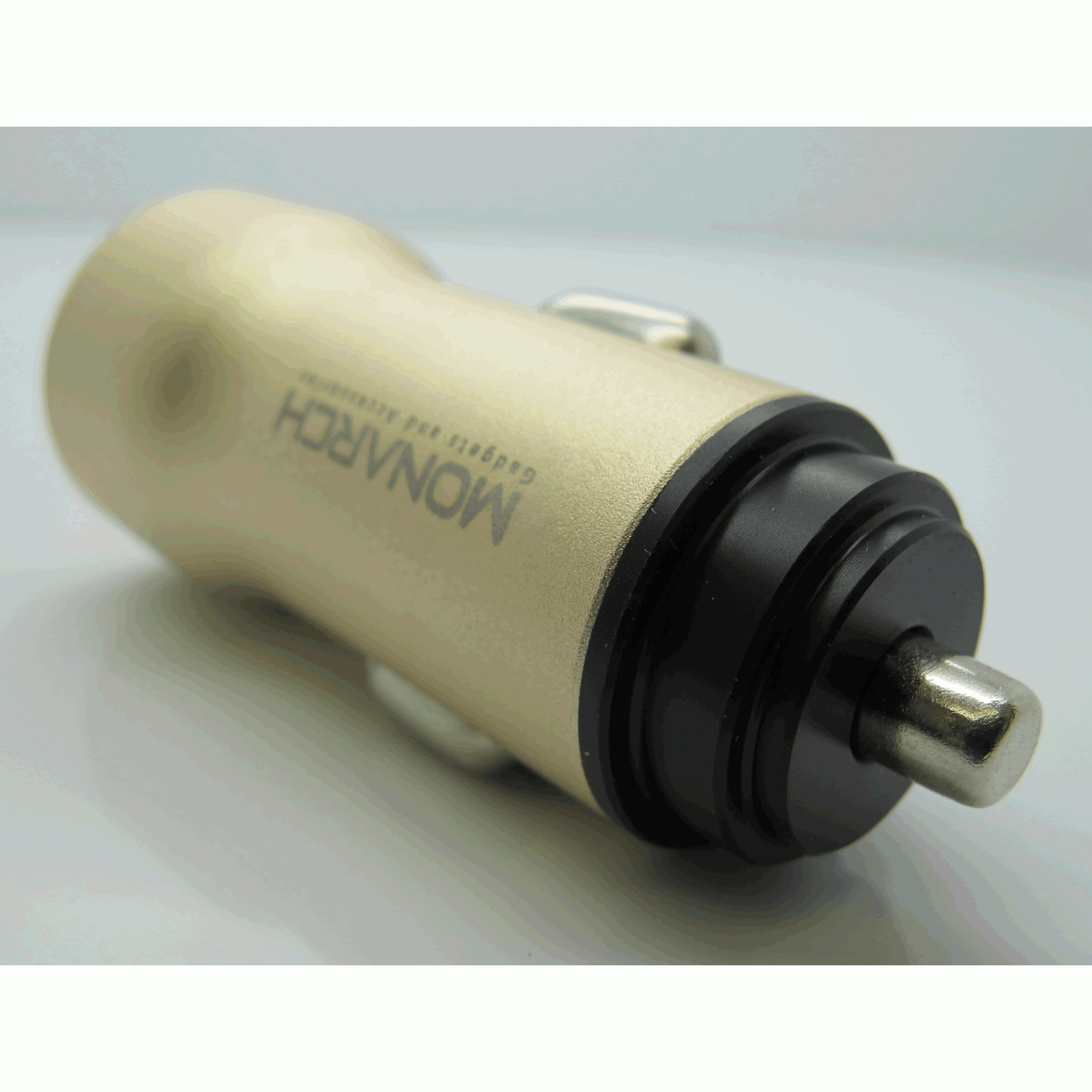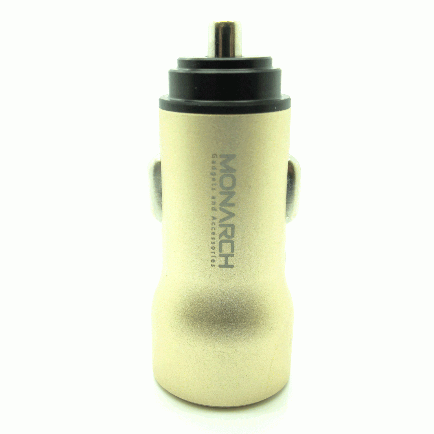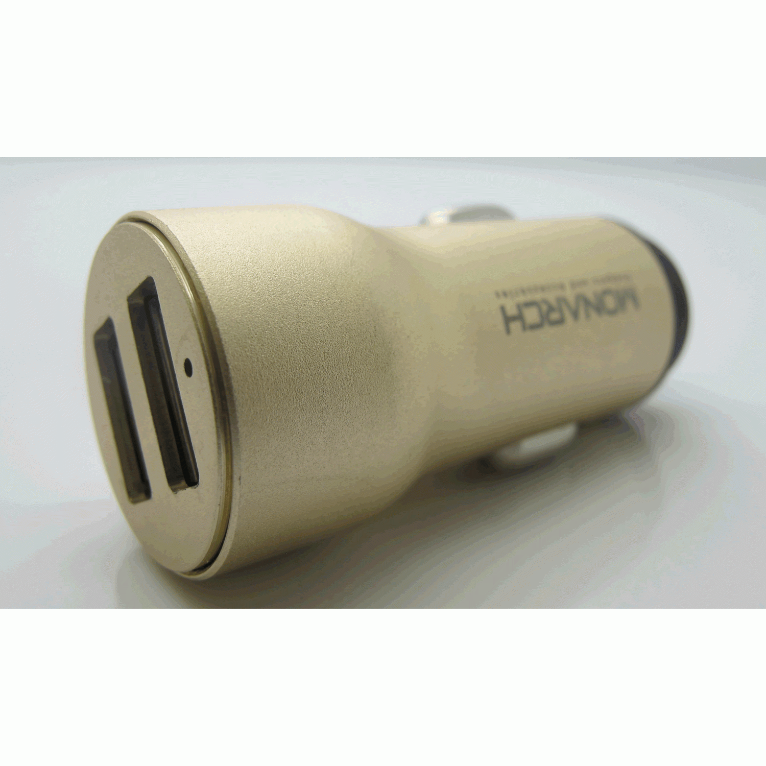 New Arrival Dual Universal Monarch USB Car Charger with 3.4A High Output 2-Port Rapid Light Weight, Slim Design, Polymer Battery for Smartphone, Tablets, Camera and GPS-Gold