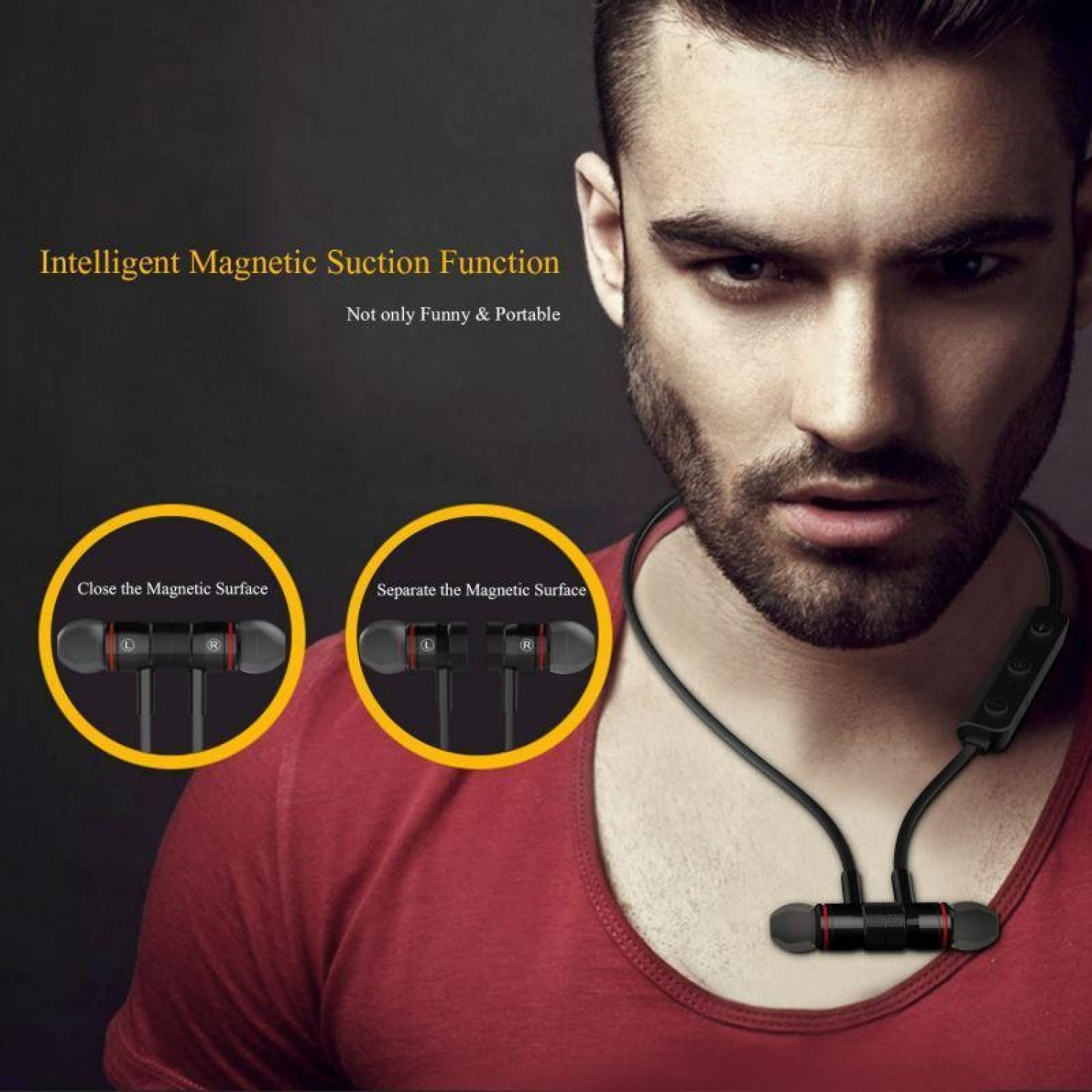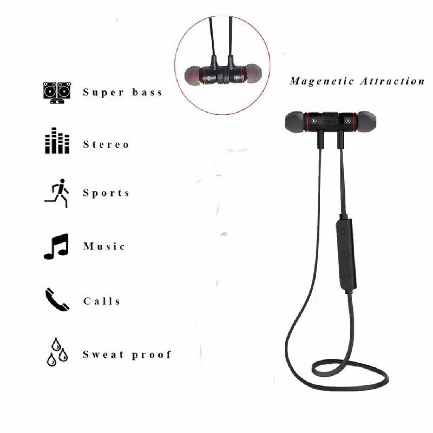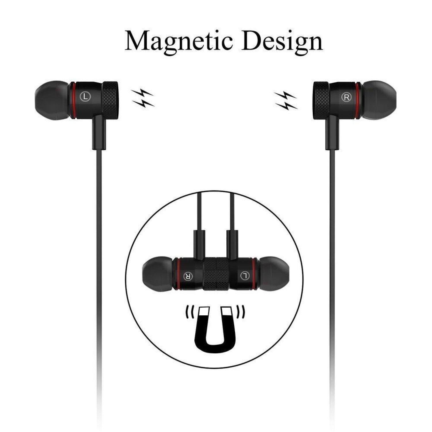 Magnetic Adsorption: Allow you to attach the two headphones together when you are not using; therefore, you can wear like a necklace around neck; so that in a convenient way to carry around with you when you are not using them.